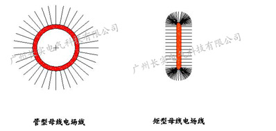 由圖可見,管型母線電場線徑向分布均勻,而矩型母線電場線則大量集中于邊角上,因此管型母線更易于控制電位、限制電場。我公司制造的管型母線以電容屏構(gòu)成一串同軸圓柱電容器,其徑向軸向電壓分布均勻,耐壓等級能與交聯(lián)電纜相媲美。也由于電的集膚特性,使電流密集分布于環(huán)型截面中,因而又使管型母線比電纜母線能承載更大的電流。